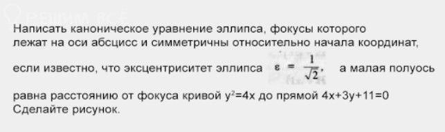 Как написать каноническое уравнение эллипса? Условия задачи в прикрепленной фотографии