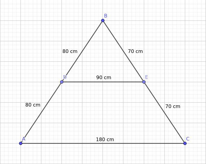 P = AD + DB + BE + EC + AC = 80 + 80 + 70 + 70 + 180 = 480 см