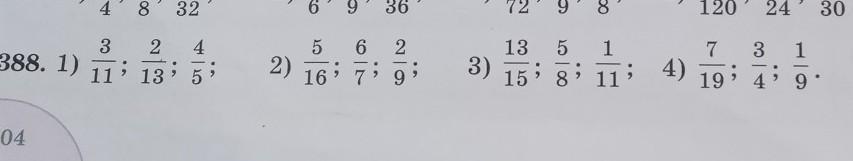 388. 1) 104 3 2 4 11' 13' 5' 2) 5 6 2 16; 7; 9; 13 5 1 7 3 3) 15; 8; I; 4) 19:49. 11 4' помогите пожалуйста