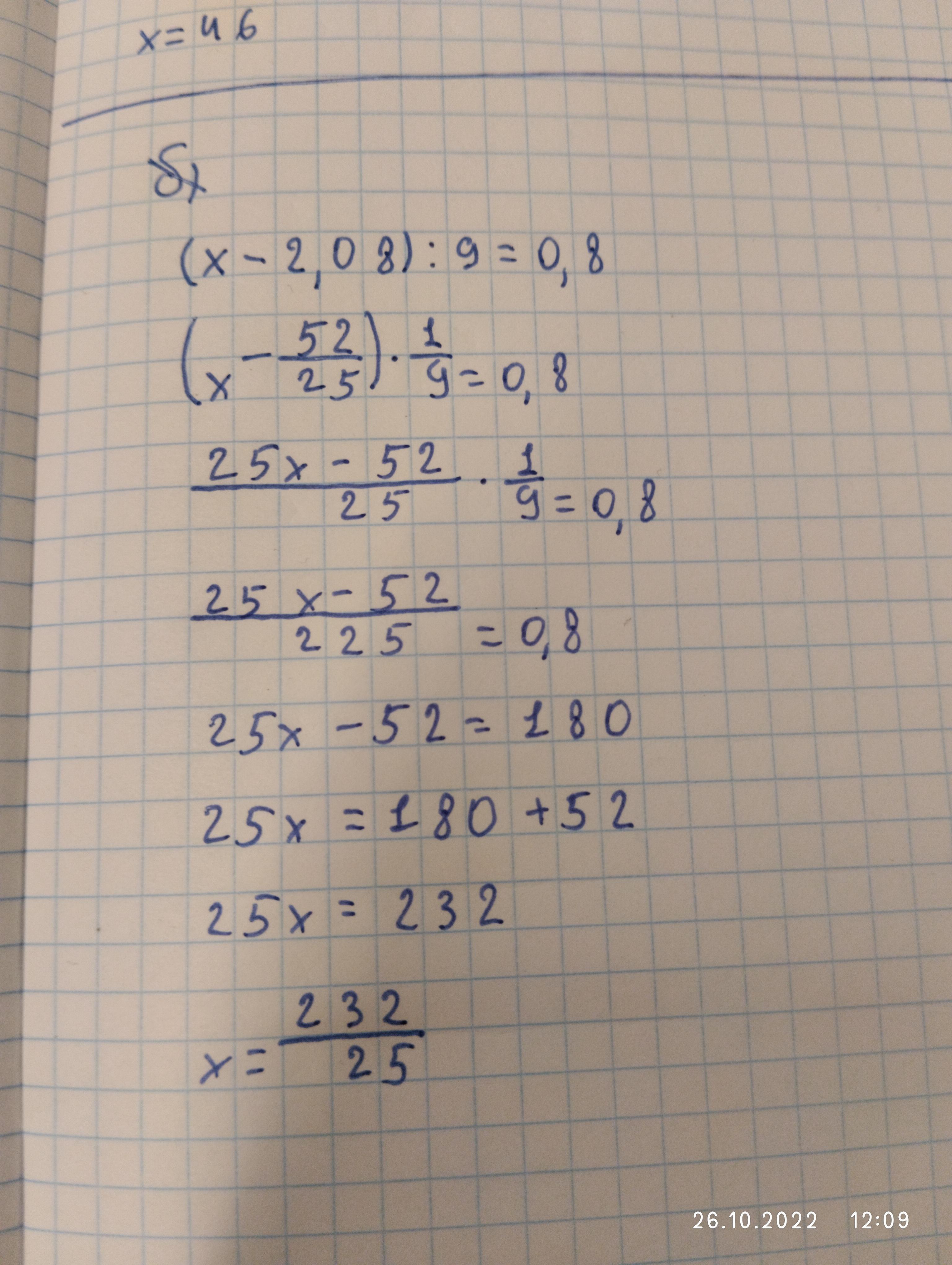 (х - 2,08 ) : 9 = 0,8