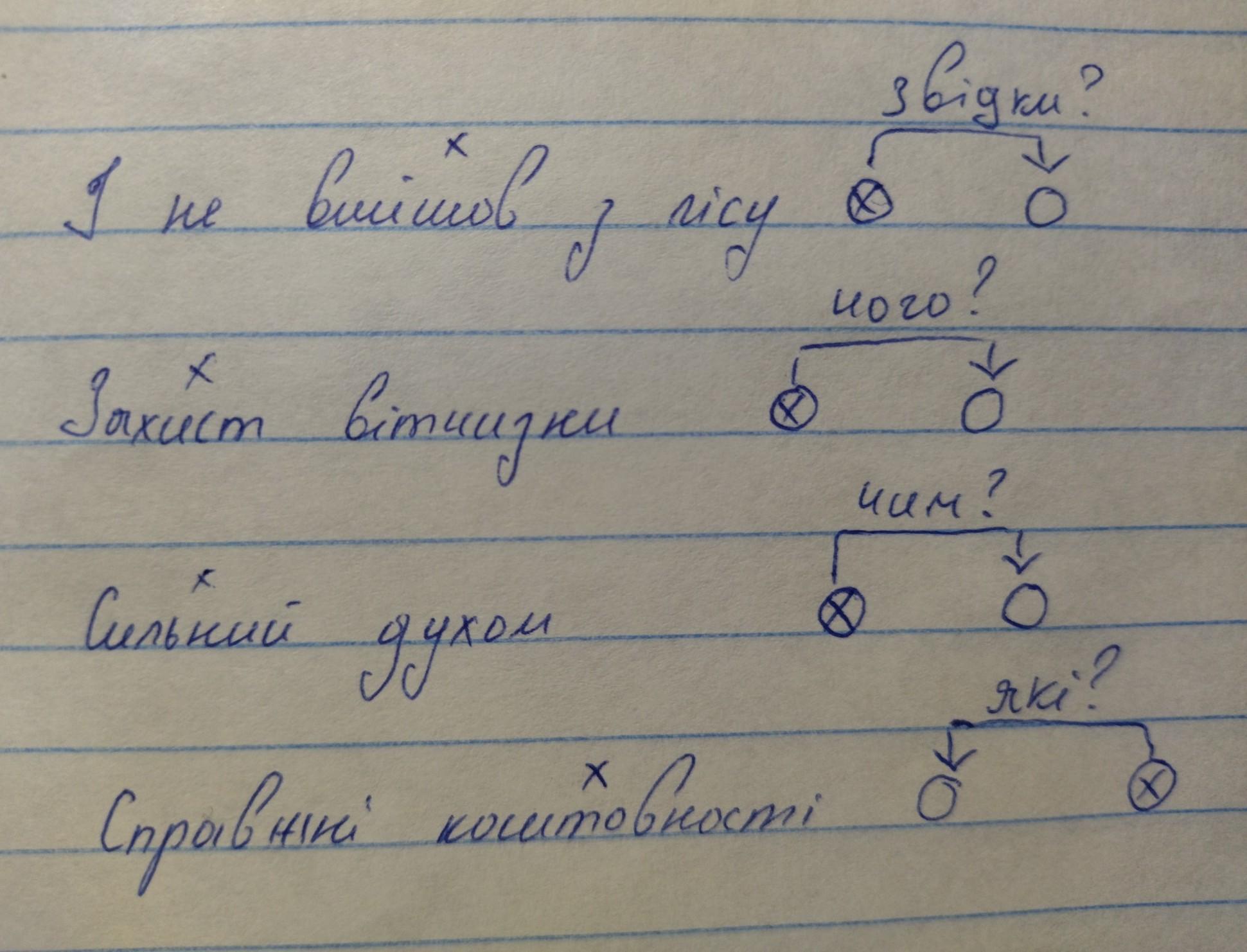 8. Визначити головне i залежне слово у поданих словосполученнях, намалювати схему. I Не вийшов з лісу, захист Вітчизни, сильний духом, справжні коштовності.