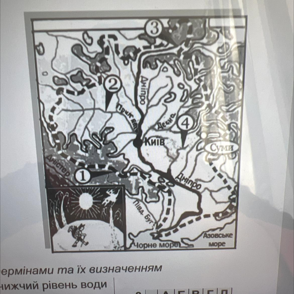 7. Установіть відповідність між елементами річки Дніпро та їх назвами