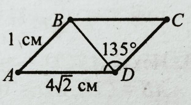 Сторони паралелограма дорівнюють 4√2 см і 1 см, один з його кутів дорівнює 135⁰. Знайдіть меншу діогональ паралелограма.