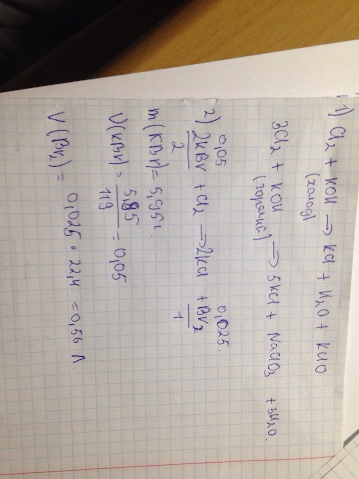 2)Какой объем хлора (л) при( н.у) потребуется для полного вытеснения брома из 5,95г бромида калия ?