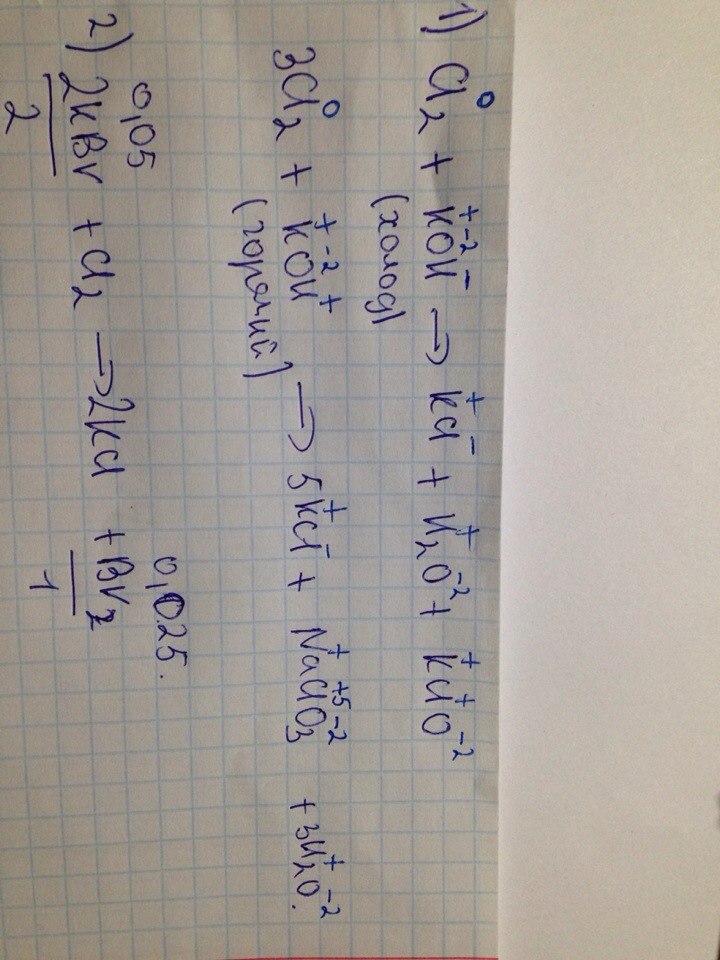 1)Какого влияния хлора на нагретый и холодный едкий калий? Определите степень окисления хлора в веществах , образовавшихся в результате реакции.