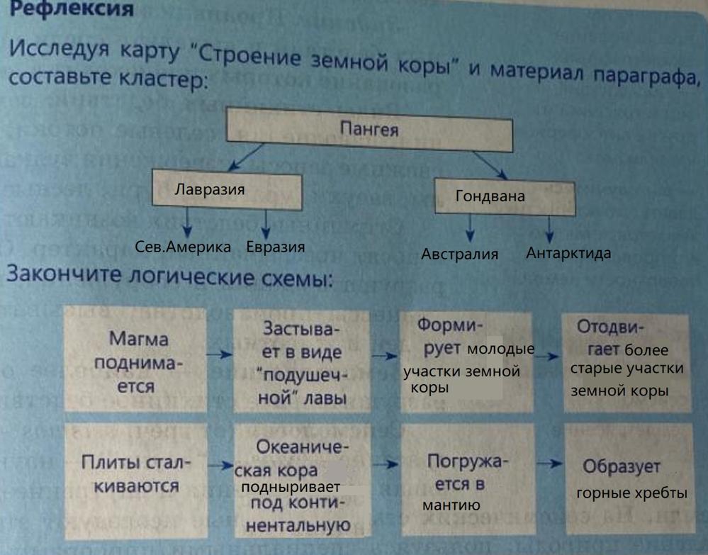 - Исследуя карту "Строение земной коры" и материал параграфа, составленный кластер дан ниже в приложении
