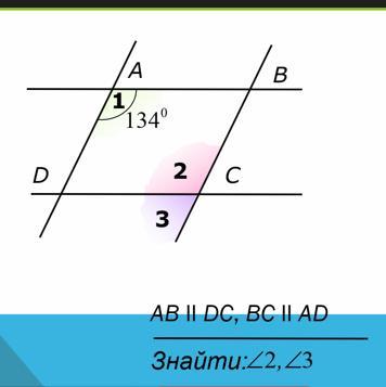 Потом ищем угол 3,он равен 180°-угол 2=180°-134°= 46°,т.к. они смежные.