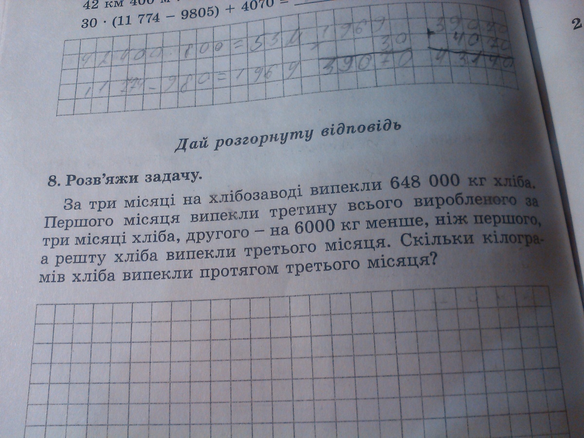 648000 - 216000 - 210000 = 222000 кг выпекли хлеба в 3-й месяц