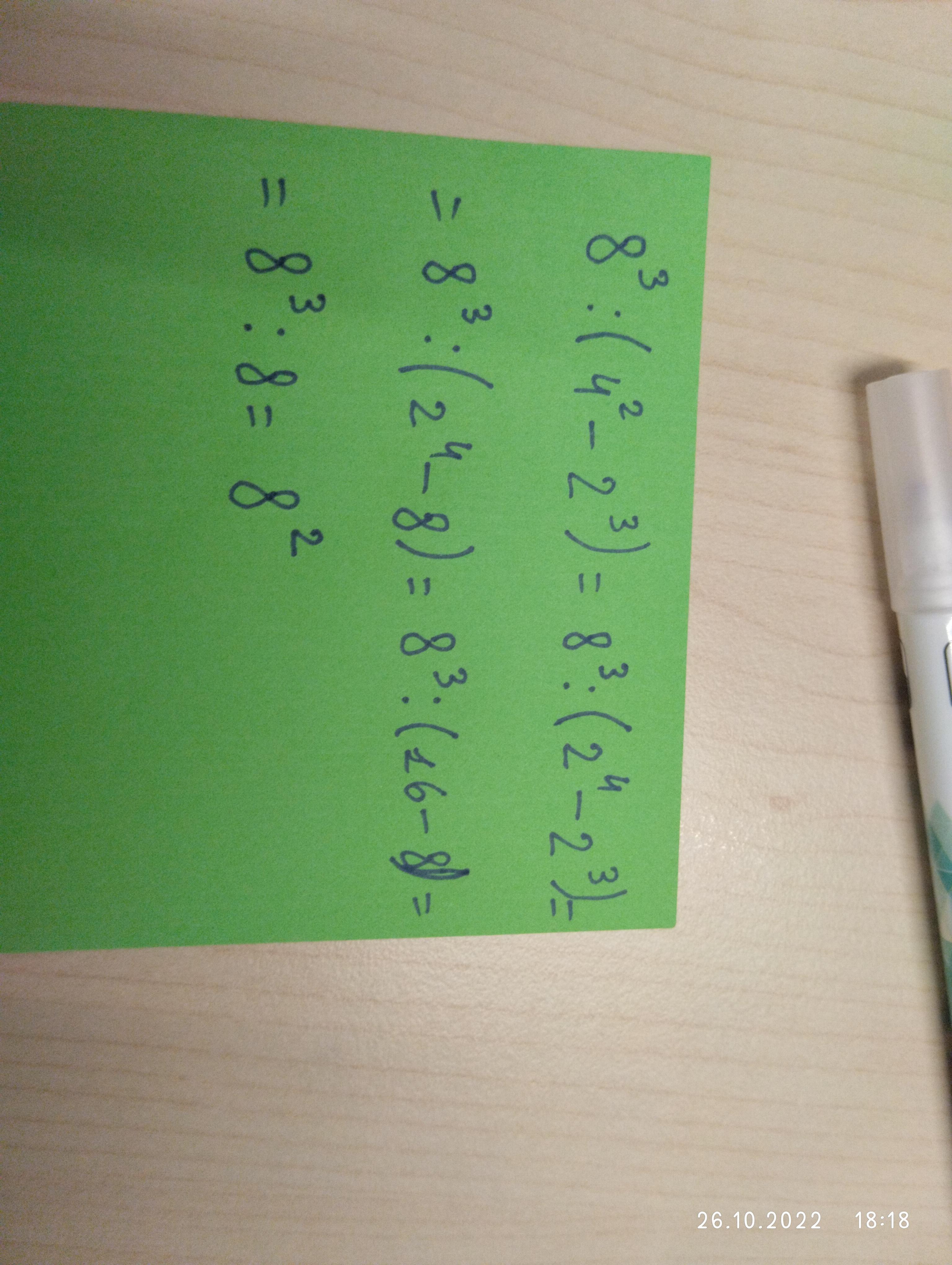 8³:(4²-2³)=8³:(2⁴-8)=8:(16-8)=8³:8=8²=8*8=64