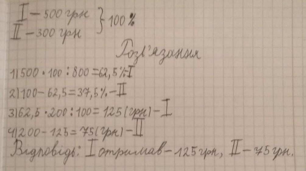 1 отримав 125 грн, 2 отримав 75 грн.
