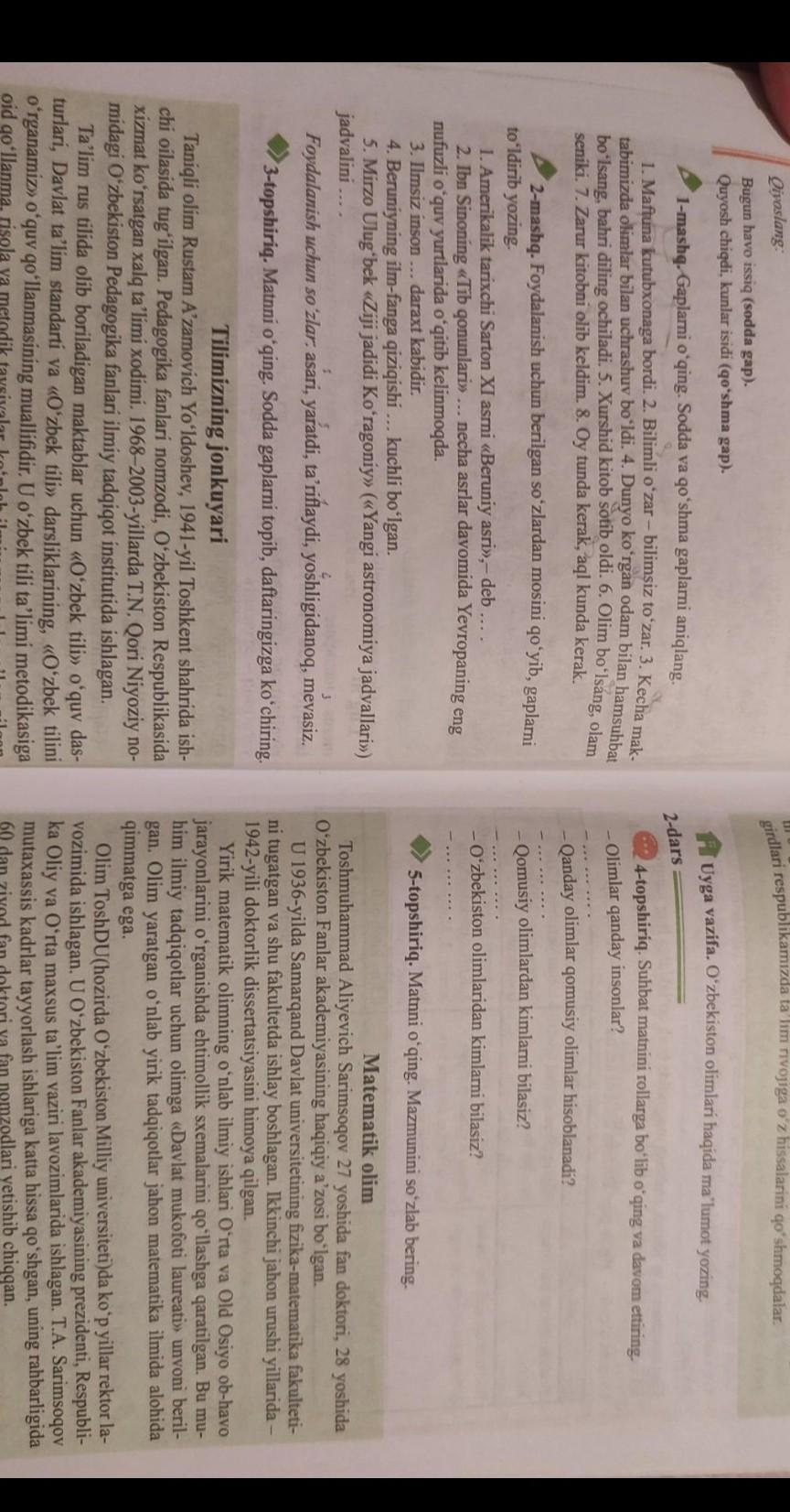 1 предложение и следующий абзац первое предложение и koʻplab shogirdlar tayyorlagan