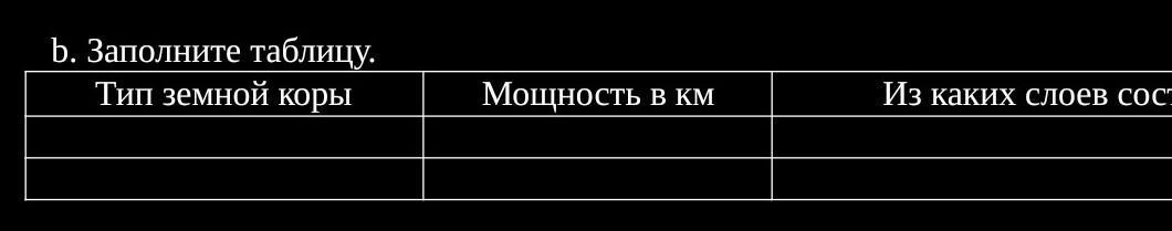 Материковую земную кору составляют 3 слоя. Первый слой - осадочный, его толщина составляет от 10 до 15 км.