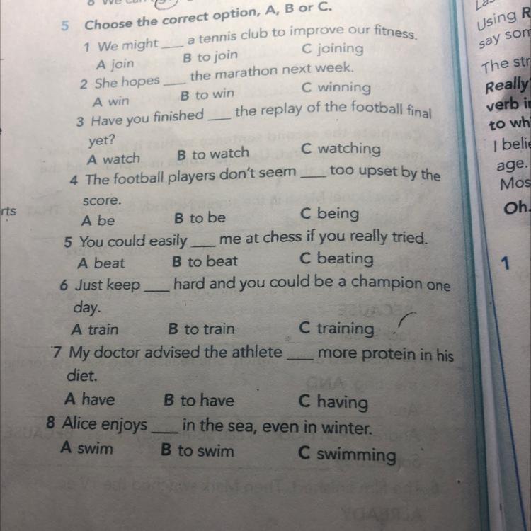 1 B,2 A,3 A, 4 C,5 C,6 A,7 B,8