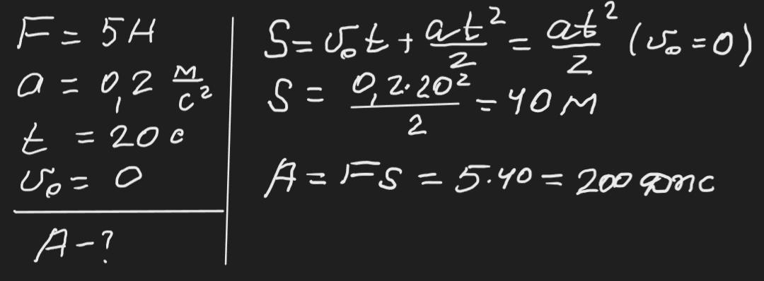 Під дією сталої сили 5Н тіло починає рухаться з прискоренням 0,2м/с. Яку роботу звершає ця сила за перші 20с дії