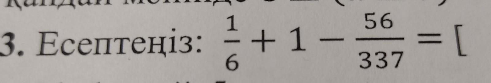 Покрокове пояснення: 1/6+1-56/337=(337*1+337-6*56)/2022=(674-336)/2022=338/2022= 169/1011