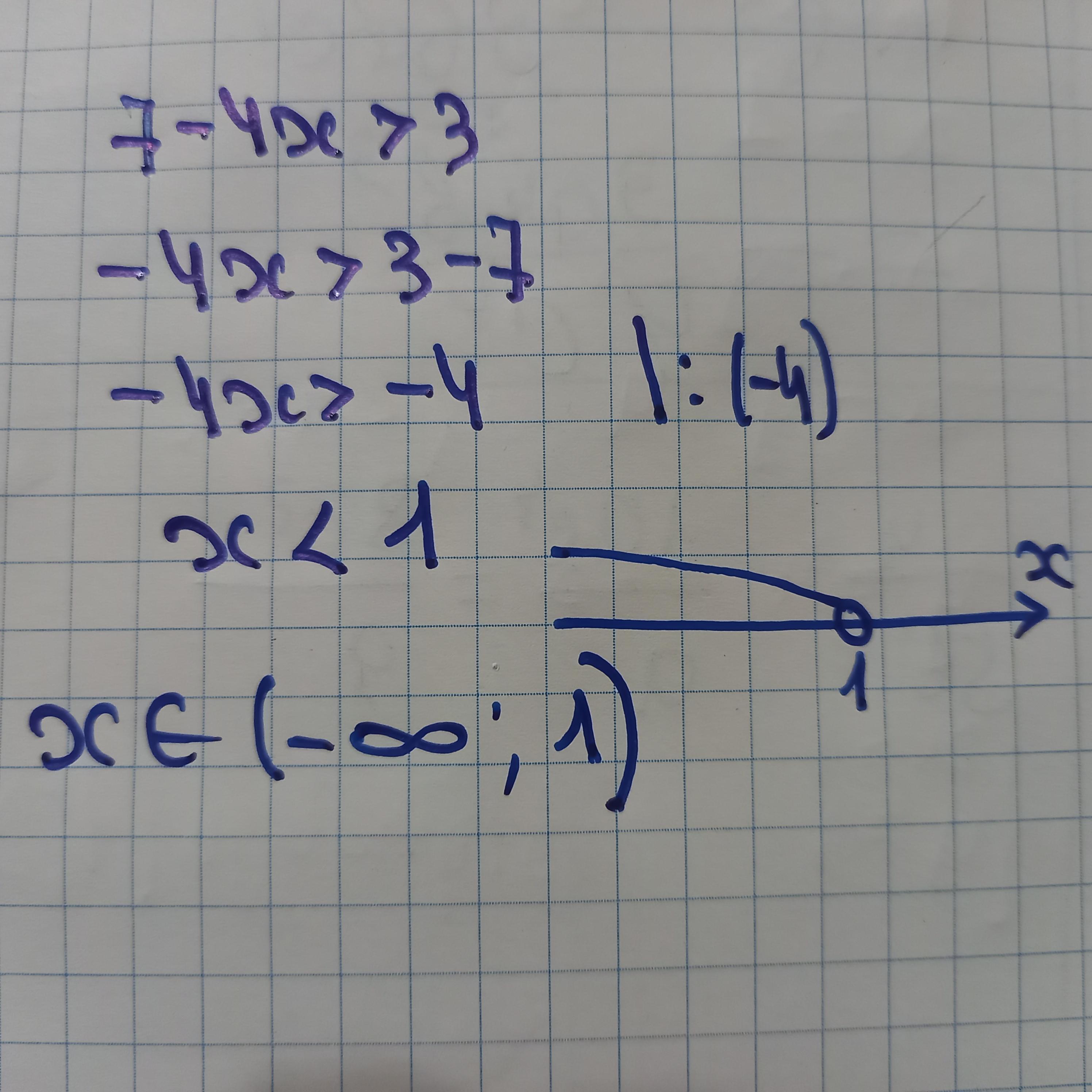 7-4х>3