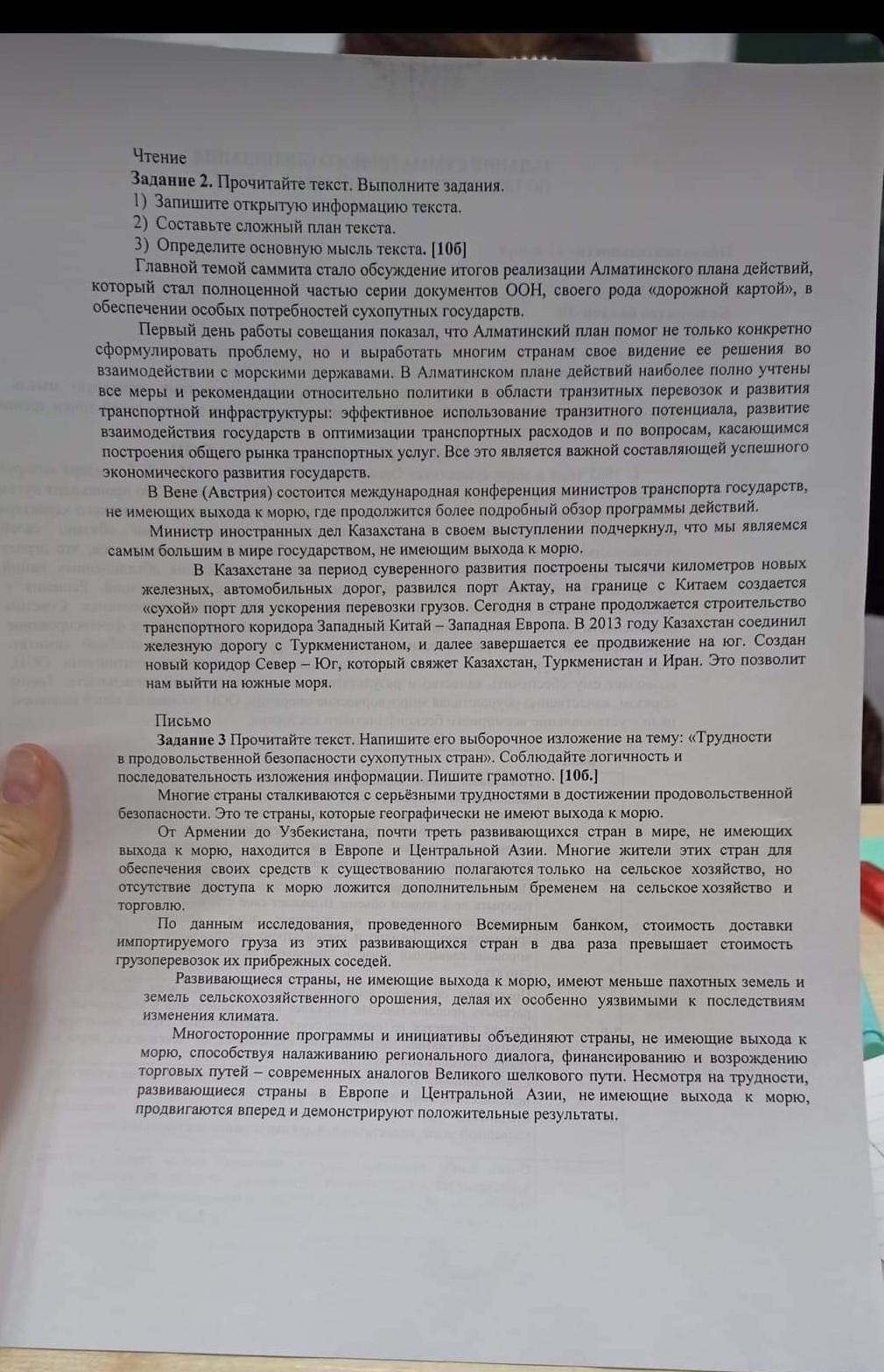 3) Определите основную мысль текста [106] Главной темой сам того реалии Алматинского плана действий. который стал полноценной частью серии документов ООН, нойрто обеспечении особых потребностей сухопутных государств.