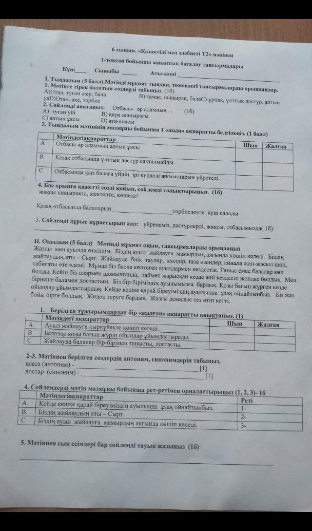 Тыңдалым мәтін берілмеген ғой 1,2,3 орындамадым