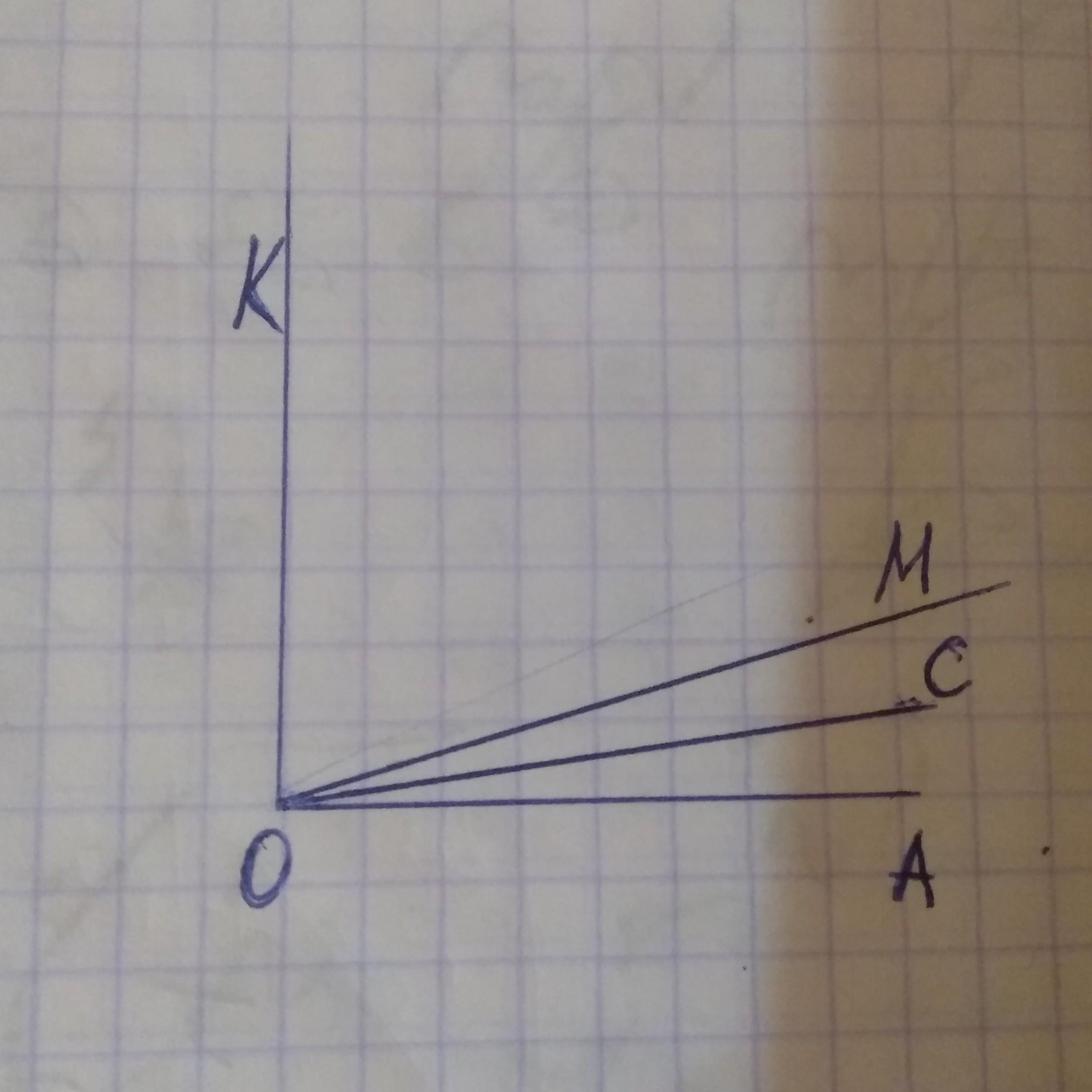 Так как луч ОС является биссектрисой угла АОМ, тогда: угол СОМ = угол СОА = 20° : 2 = 10°