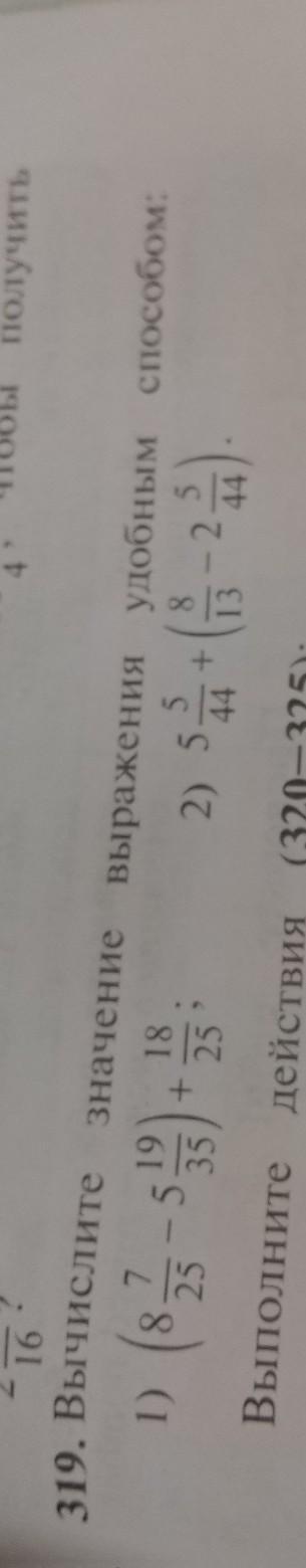 319. Вычислите значение выражения 2) 5. 19 1) (875-513)+15 25 25 удобным способом: 5 44 5 8 + 44 13 2. с Решением пожалуйста пожалуйста