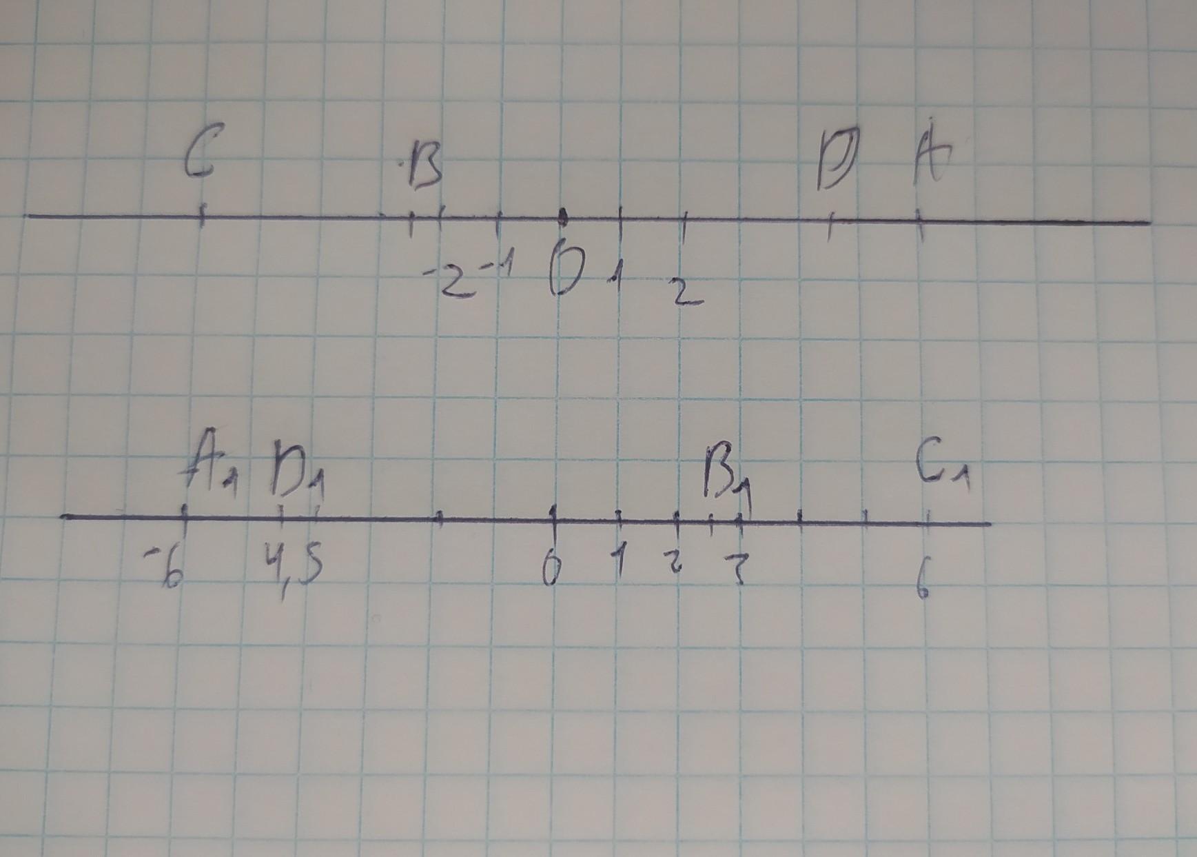 4. а) На координатной прямой отметьте точки А(6), В(-2,5), C(-6), D(4,5). б) Укажите точки с противоположными координатами.