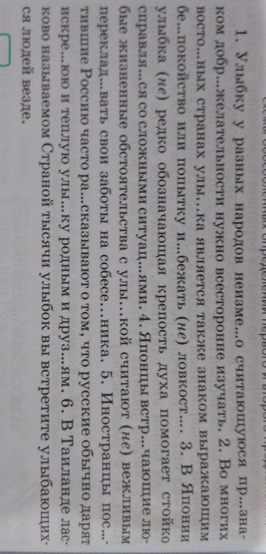 1. Улыбку у разных народов неизме...о считающуюся пр...зна- ком добр...желательности нужно всесторонне изучать. 2. Во многих восто...ных странах улы...ка является также знаком выражающим бе...покойство или попытку и...бежать (не) ловкост.... 3. В Японии улыбка (не) редко обозначающая крепость духа помогает стойко справля...ся со сложными ситуац... ями. 4. Японцы встр... чающие лю- бые - ся людей везде. 6 во всех предложениях сделайте причастный оборот пж ПЖ ПЖ ПЖ НАДО СРОЧНО