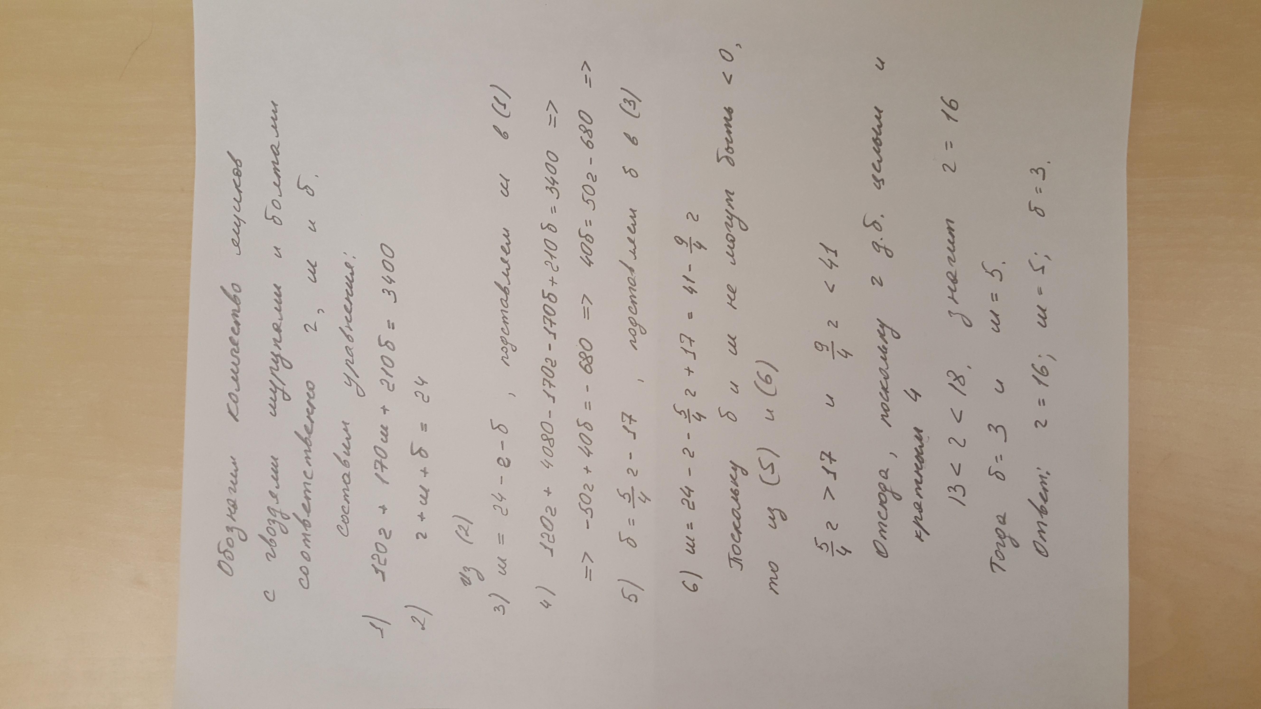 2. В магазині купили цвяхи, шурупи и болти в упаковках по 1 кг, всього 24 упаковки, на суму 3400 грн. Ціна упаковки цвяхів 120 грн., шурупів - 170 грн., болтів - 210 грн. Скільки упаковок цвяхів, шурупів і болтів було куплено?