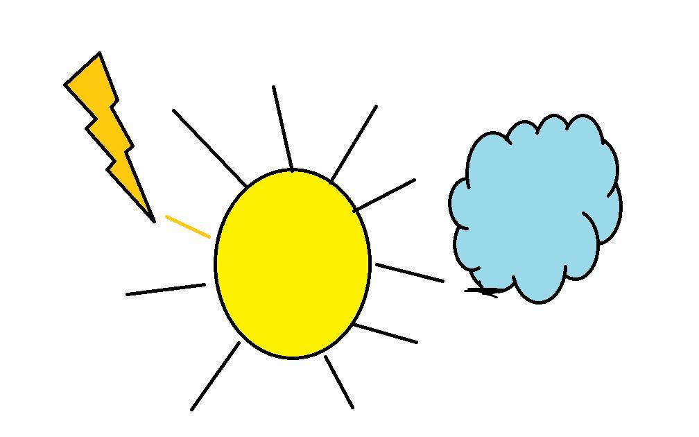 На першій сторінці документа створіть три фігури (блискавка, сонце та хмаринка)та розфарбуйте їх в відповідні кольори(помаранчевийч жовтий та блакитний)