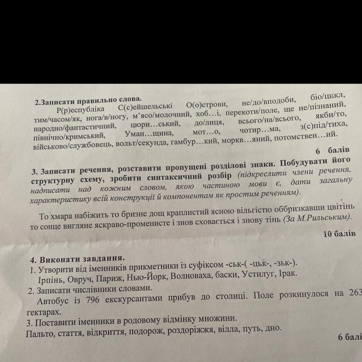 Ну я тільки 5 клас... 3 завдання:То хмара набіжить, то бризне дощ краплистий, ясною вільгістю оббрищкавши цвітінь, то сонце вигляне яскраво-променисте, і знов сховається, і знову тінь.