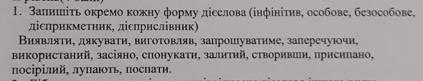 1. Запишіть окремо кожну форму дієслова (інфінітив, особове, безособове, дієприкметник, діє прислівник)