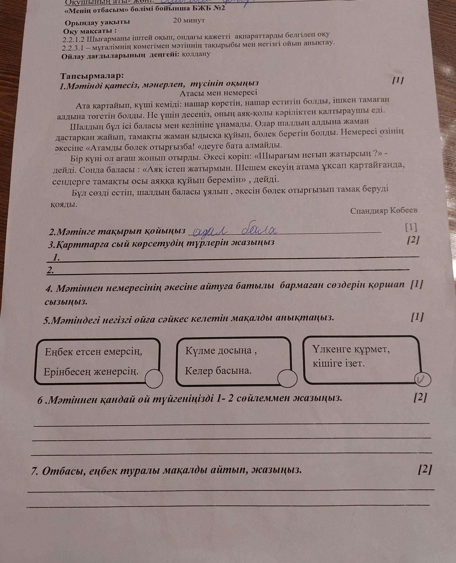 2 класс әдебиеттік оқу