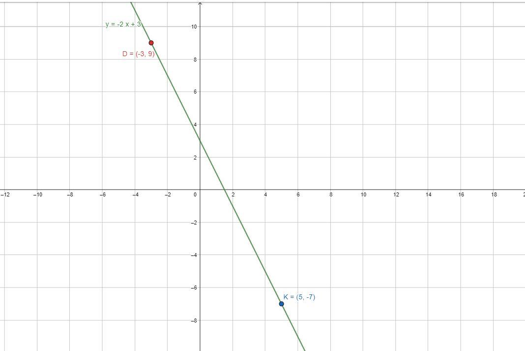 Нам дана линейная функция y = kx + b Которая проходит через точки D (-3 ; 9) и K (5 ; -7)