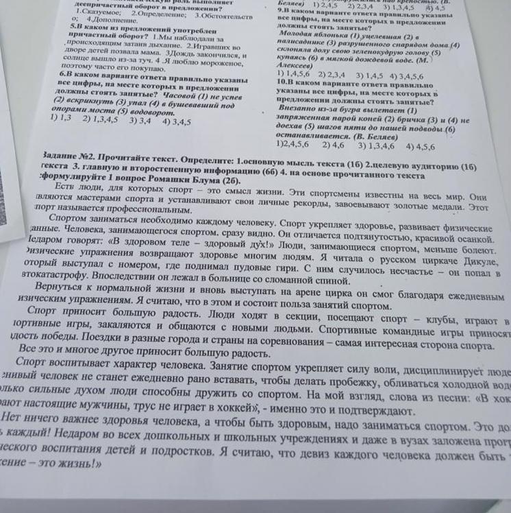 3)Спорт воспитывает характер человека. Занятие спортом укрепляет силу воли, дисциплинирует людей (дальше не видно)