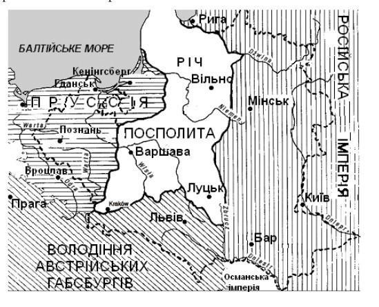 Що зумовило скорочення території Речі Посполитої так, як зазначено на картосхемі?