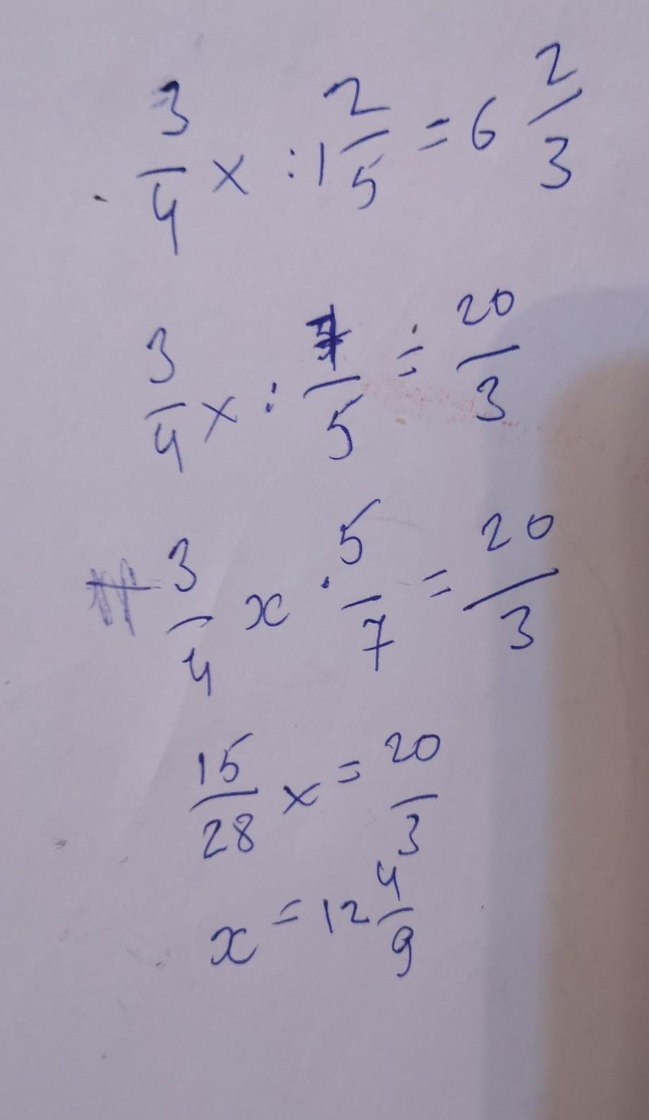 Если неизвестное число увеличить на 3/4 части того же числа и полученную сумму поделить на 1 2/5 то получим 6 2/3 Найдите неизвестное число