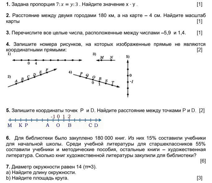 1.Находим единичный отрезок.В данном случае начальная точка-O.Значит,каждое деление равно 1.