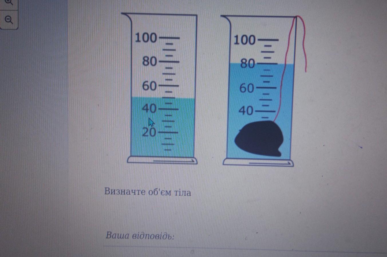 Сначала было 50 миллилитров воды , а после погружения тела стало 80.