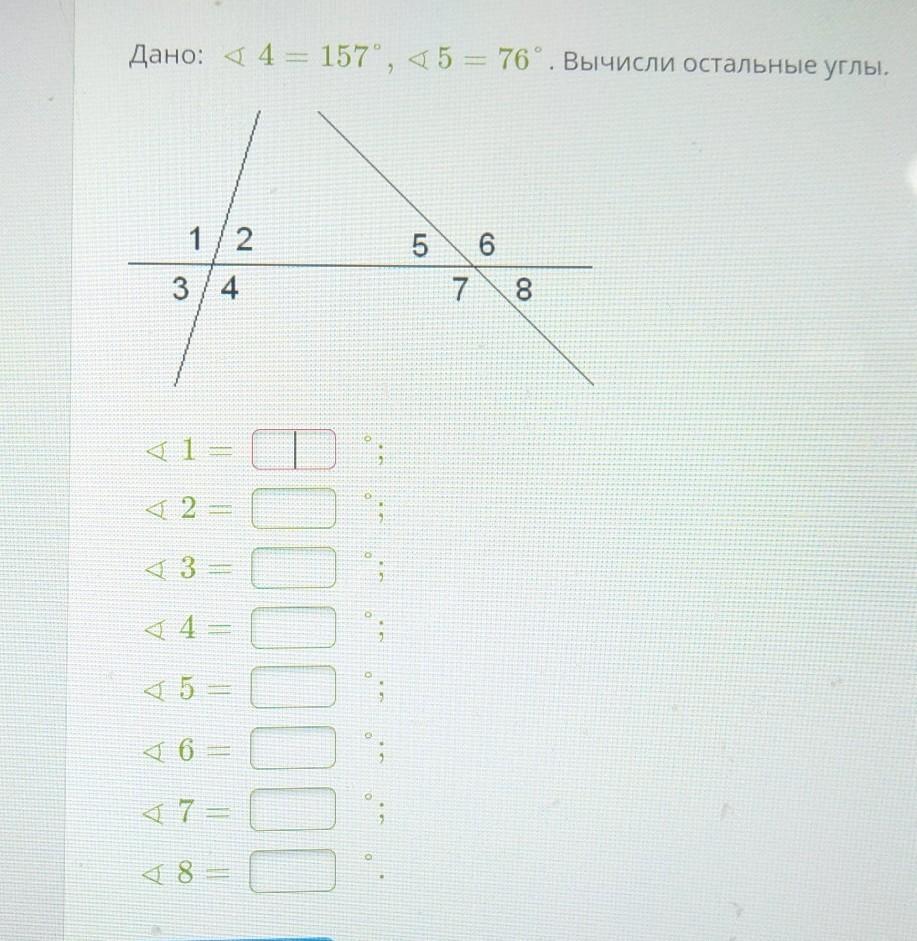 <1 и <4 вертикальные, поэтому <1 = <4; <2 и <4, <3 и <4 смежные поэтому <2 = <3 = 180 - <4. Аналогично с <5.