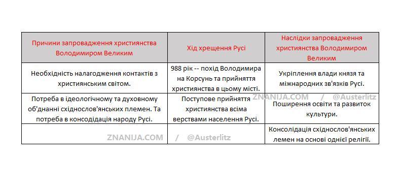 Скласти таблицю "Причини, хід, наслідки запровадження християнства Володимиром Великим" ПОМОГИТЕ ПОЖАЛУСТА