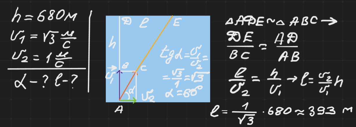 7. Катер перепливає річку завширшки 680 м за найменший час. Швидкість течії дорівнює 1 м/с, а швидкість катера відносно води ✓3 м/с. Пiд яким кутом до берега буде напрямлена швидкість катера відносно берега? На скільки метрів течія знесе катер за час переправи?