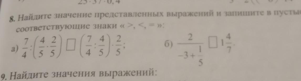 8. Найдите значение представленых выражений и запишите в пустые клетки соответствующие знаки << >,<,= >>