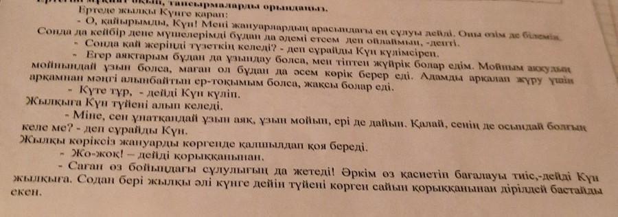 5.Окнғаны ретімен орналастырыңыз Сөйлем: 1. Әркім өз қасиетін бағалауы тиіс 2. Жылкы мактанады 3. Күн түйені алып келеді. (1) : gaige Peri: