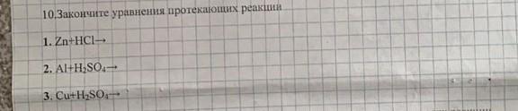 10.Закончите уравнения протекающих реакций 1. Zn-HCl- 2. Al+H2SO4- 3. Cu+H2SO - pobu