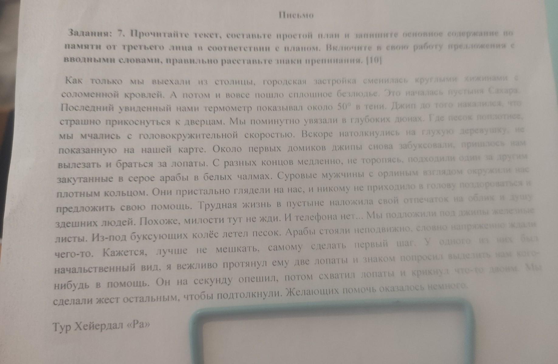 Прочитайте текст составьте простой план и запишите основное содержание по памяти от третьего лица в соответствии с планом велючите в свою работу предложение с вводными словами
