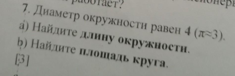 7. Диаметр окружности равен 4 (л-3). а) Найдите длину окружности. b) Найдите площадь круга.