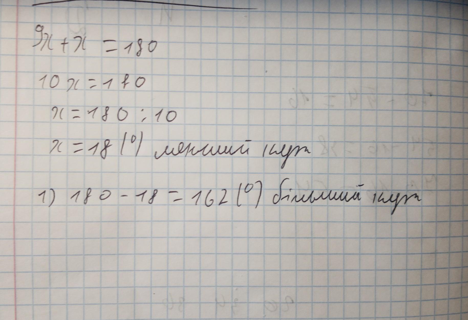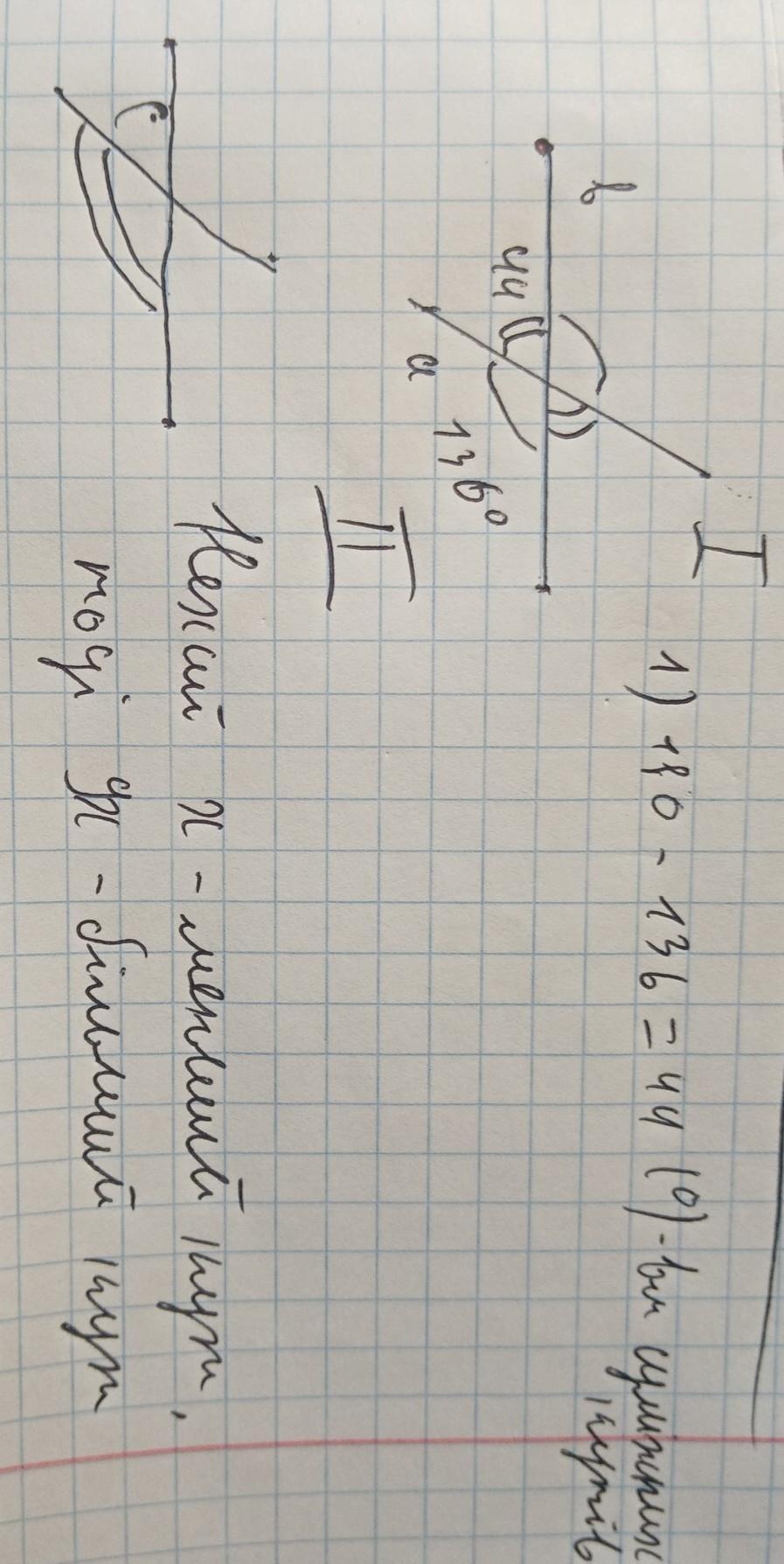 II варіант 1° При перетині двох прямих утворились кути, один з яких дорівнює 136° Знайти всі утворені кути. 2°. Знайти градуснi мiри суміжних кутів, якщо відомо, що один з них у 9 раз