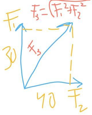 F=√30²Н²+40²Н²=√2500Н²=50Н