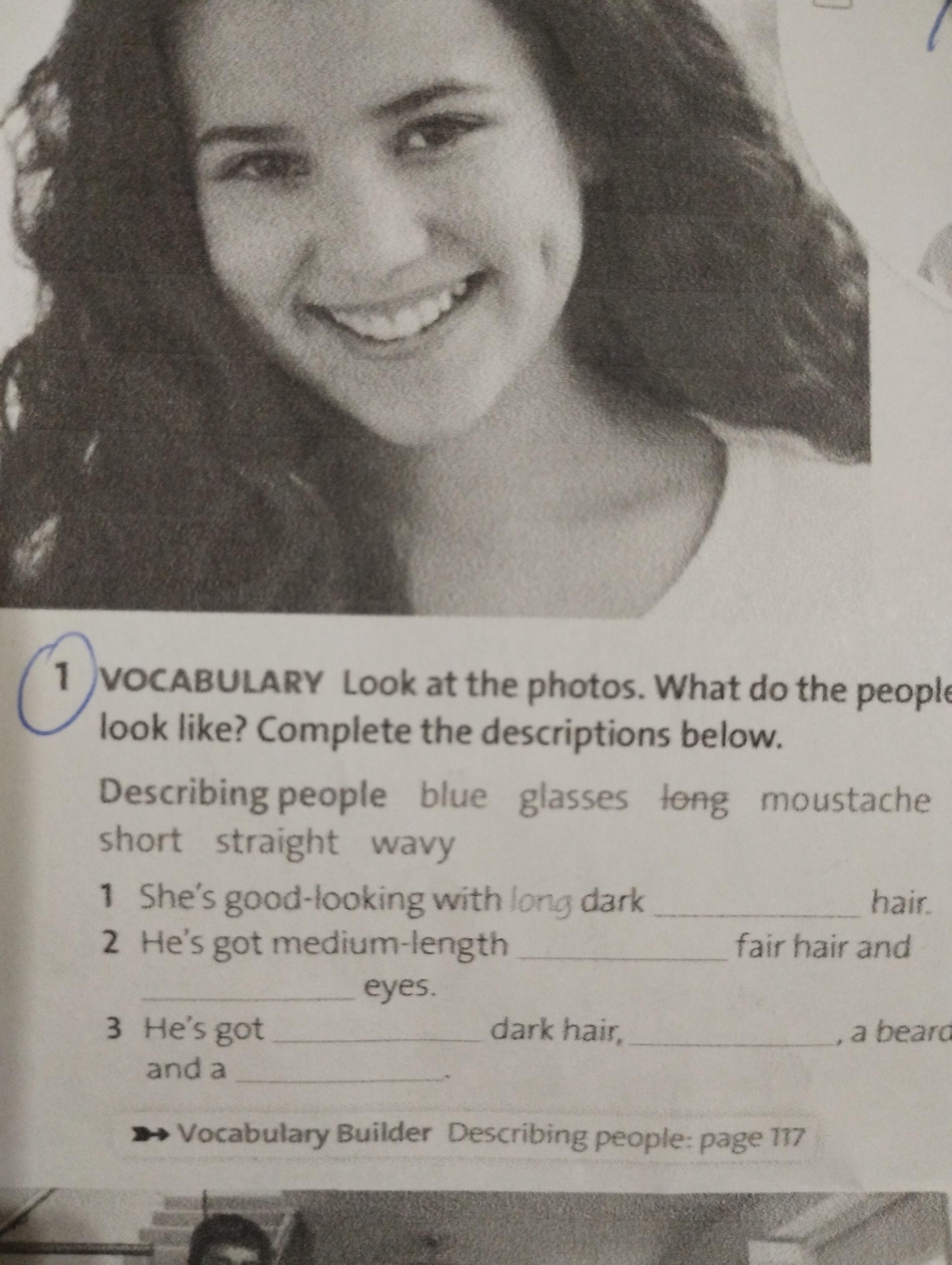1 VOCABULARY Look at the photos. What do the people look like? Complete the descriptions below.