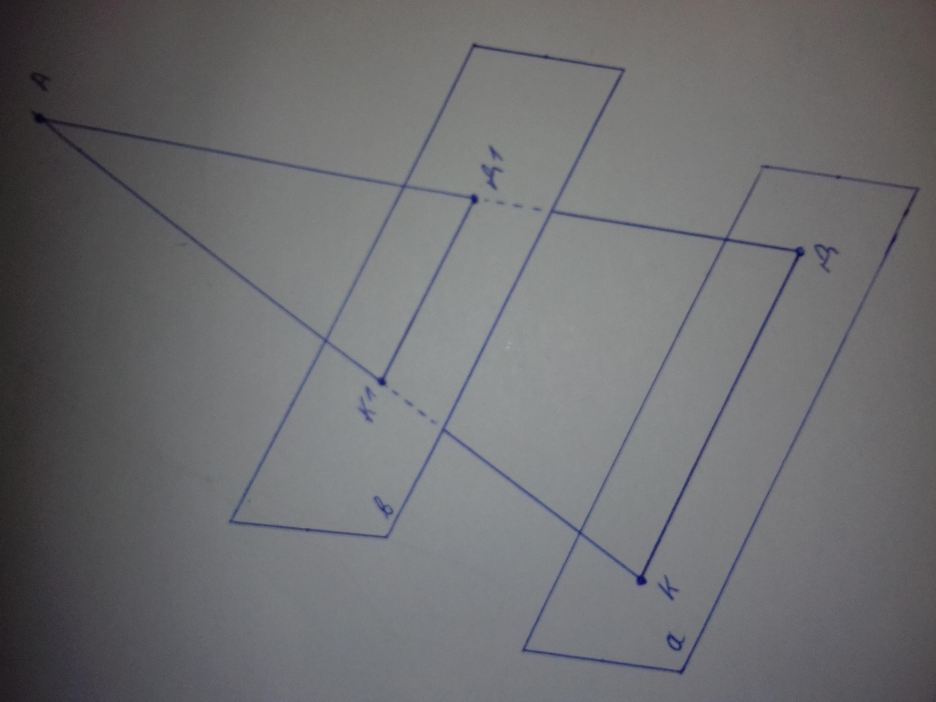 Трикутники АКД та АК1Д1 - подібні, оскільки площини а та в - паралельні, то відрізки КД та К1Д1 - також паралельні. Таким чином ∠АКД = ∠АК1Д1, ∠АДК = ∠АД1К1, а ∠А - спільний для двох трикутників.