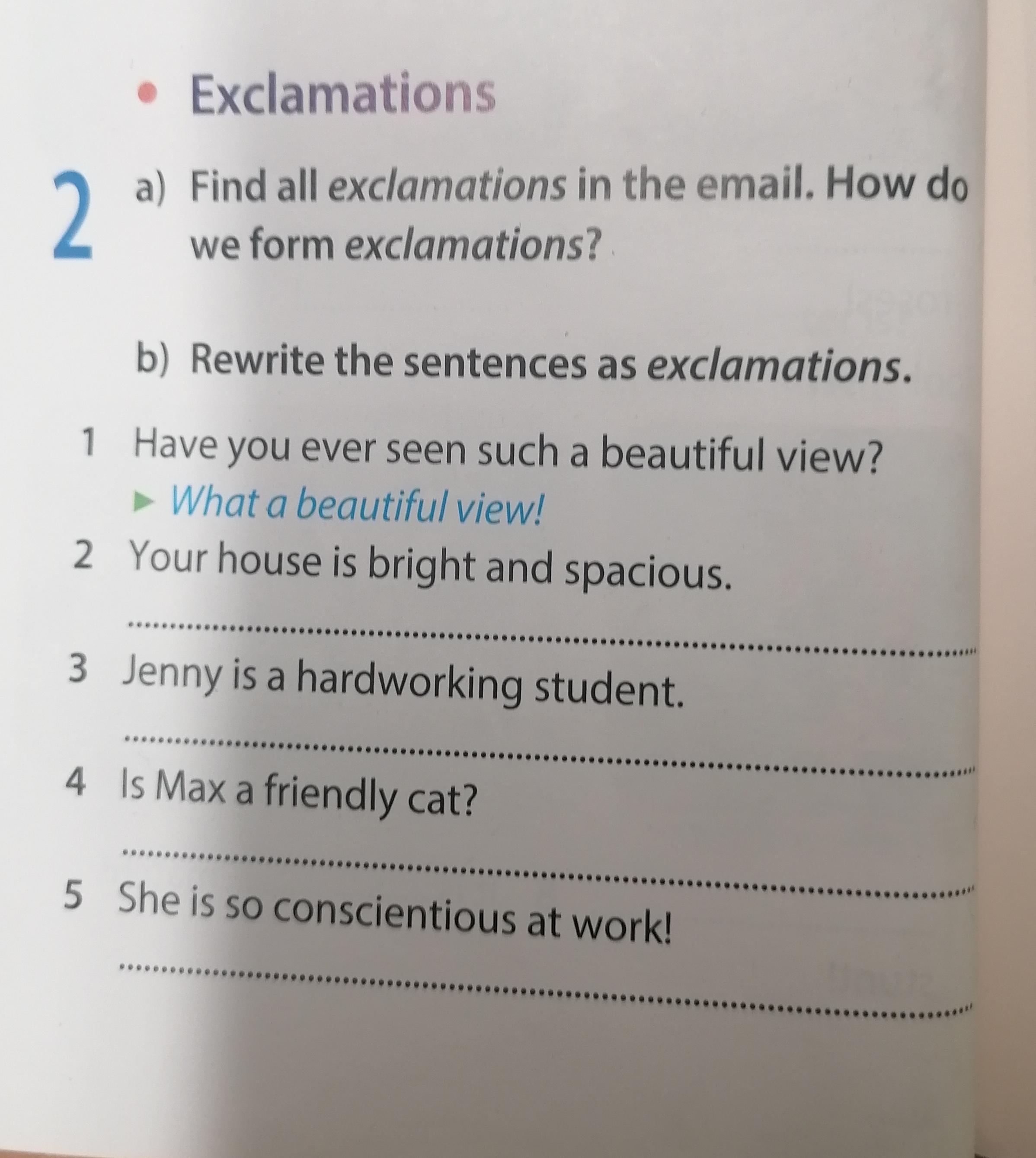 What bright and spacious house! What a hardworking student! What a friendly cat! What conscientious at work girl!